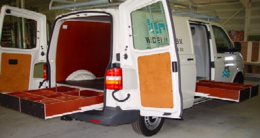 In reactie op een groeiend aanbod en gebruik van de kleinere bedrijfswagens hebben wij een serie ladeblokken op de markt gebracht. Ladeblokken in combinatie met een verhoogde vloer geven een efficiente benutting van het vloeroppervlak terwijl ook grotere zaken daarna nog geladen kunnen worden. De lades kunnen zowel bij de achterklep als bij de zijdeur gemonteerd worden. De lades zijn in vakken in te delen, tot 100 kg belastbaar en ver uittrekbaar op gelagerde geleiders. Als sluiting wordt een robuust verzonken slot in het front ingebouwd.